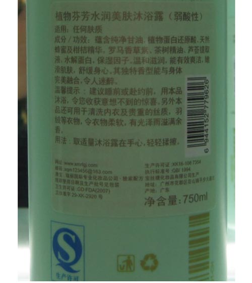 雅姿背面说明贴..